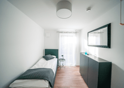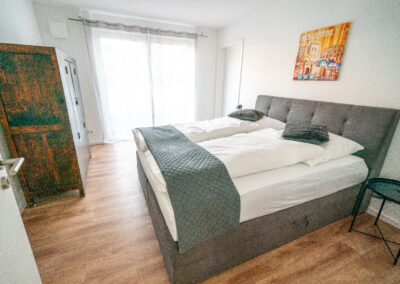 Unsere Ferienwohnung Haarmannsbrunnen liegt im Obergeschoss unseres Neubaus und erstreckt sich über ca. 100 qm. Die Gäste verfügen hier über ein Doppel- und zwei Einzelzimmer, jeweils mit Boxspringbett.