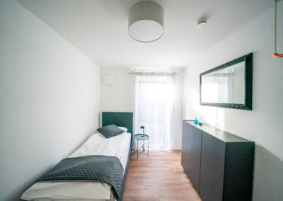 Unsere Ferienwohnung Löwenpudel liegt im Erdgeschoss unseres Neubaus und erstreckt sich über ca. 100 qm. Die Gäste verfügen hier über ein Doppel- und zwei Einzelzimmer, jeweils mit Boxspringbett.